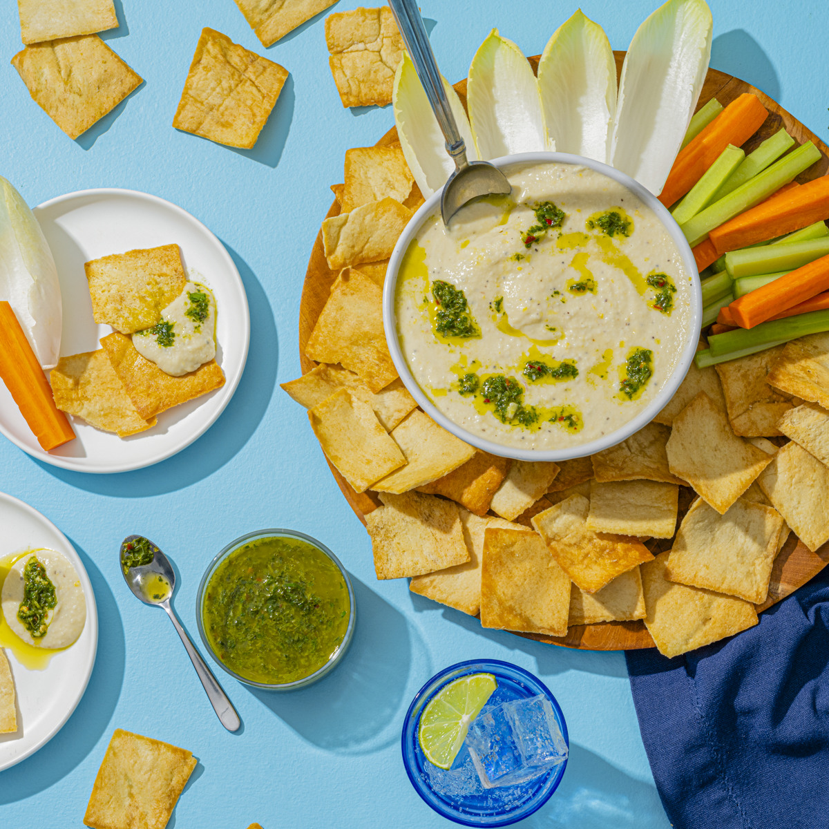 Drizzle chimichurri sauce over white bean dip. Serve with Stacy’s® Simply Naked® Pita Chips.